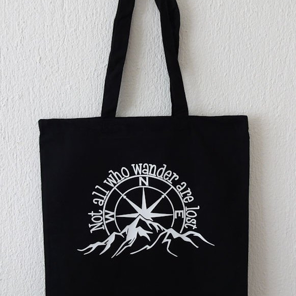 Einkaufstaschen aus Baumwolle in diversen Farben und Motiven.
