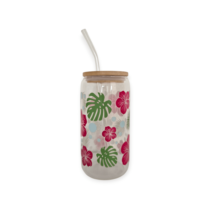 Die Trinkgläser enthalten einen Bambusdeckel und ein Glasstrohhalm